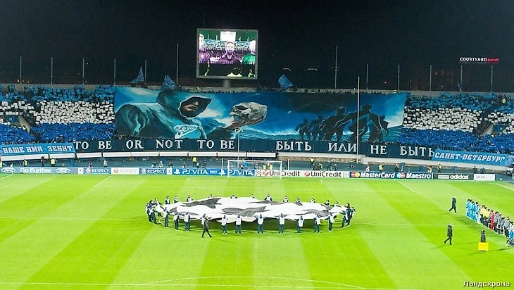 БЫТЬ ИЛИ НЕ БЫТЬ! Роль Гамлета отведена собирательному зенитовскому образу. Это не конкретный футболист, не фанат, не болельщик. в отделении на фоне лигачемпионских звезд изображены футболисты. Они тут, наверное, главные герои, потому что от них зависит результат. (с) Ландскрона.