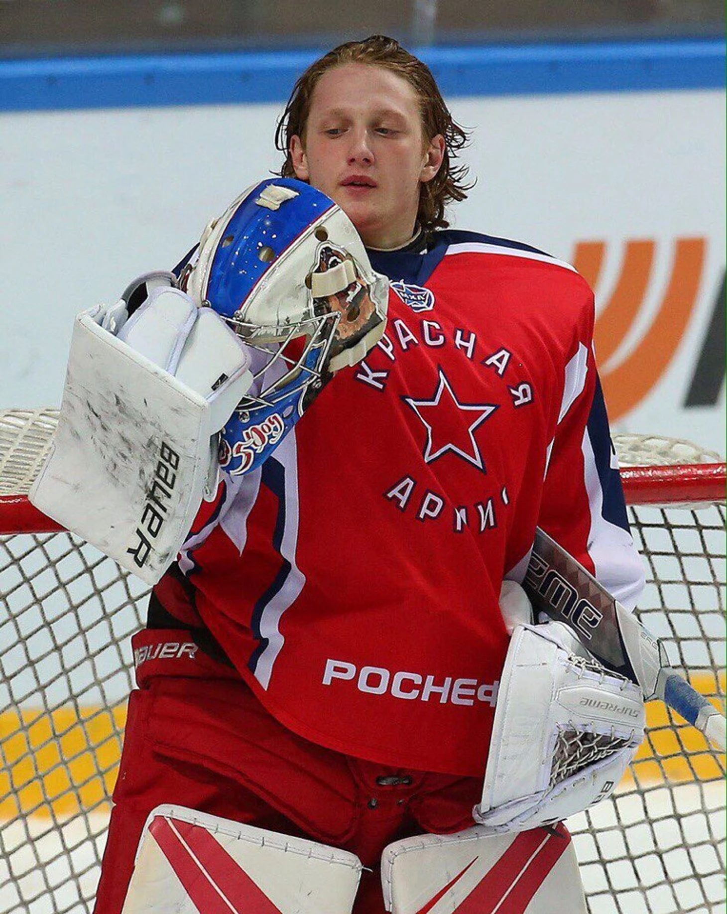 Теперь давайте познакомимся с составом клуба поближе. Вратарская зона - это всегда интересно. В прошлом сезоне мы чаще наблюдали Александра Самойлова, который доказал своё мастерство и теперь выступает в ВХЛ за чеховскую "Звезду". Его место занял Артём Корепанов. Техничный юноша в голубом шлеме с надписью "Red Dog" стал важным звеном в системе Хасанова, многие уже называют его первым номером. Но сам голкипер так не считает: