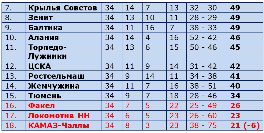 Два удара судьбы «Балтика» с трудом, но переносит. Дома балтийцы одерживают победы над «Жемчужиной» и «Торпедо», а вот в гостях почему-то напрочь разваливаются (1:4 от «Спартака», 0:4 – от «Шинника»).