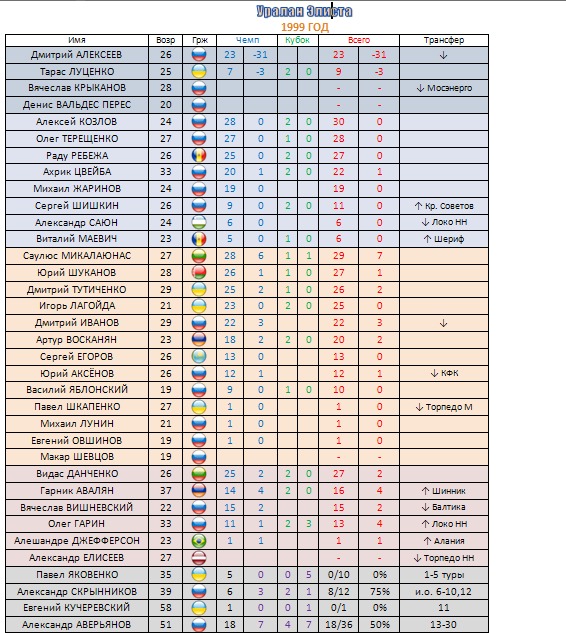 Вывел из пике считавшийся по весне скорее мертвым, чем живым «Уралан» Скрынников, а перехвативший штурвал Аверьянов уверенно довел его до тихой гавани – 9 места в чемпионате. Это был несомненный тренерский успех – и свою порцию аплодисментов Александр Николаевич за сезон-99 заслужил в полной мере.