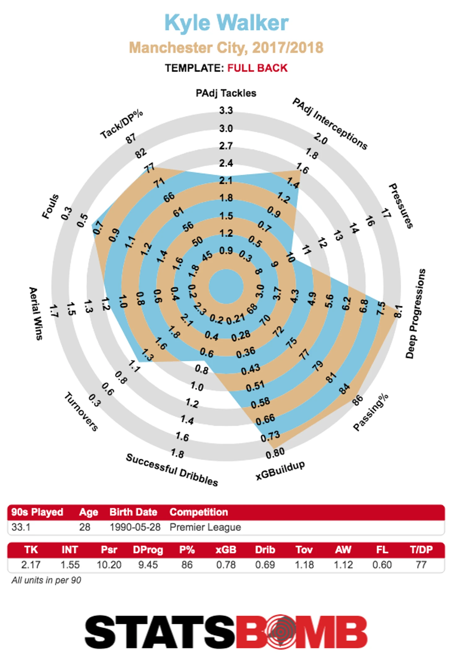Гвардиола особенный. Когда он пришел в "Баварию" он внес в футбольный словарь еще одну роль. Ложных фулбеков исполняли Алаба и Лам, немец потом даже выходил на месте опорника. В первом сезоне Пеп пытался использовать крайних защитников также, но у него были совсем другие игроки. Александр Коларов и Бакари Санья не показывали то, чего требовал Гвардиола. Крайние защитники в сезоне 2016/17 в "Сити" отдавали 113 передач/90 минут, а в этом сезоне основные Зинченко и Уокер отдавали 157 передач за 90 минут. Игроки, исполняющие такую роль, должны в первую очередь обладать умениям первого паса, видения поля и уметь находить момент когда нужно смещаться в центр, а когда на фланг для поддержки вингера.