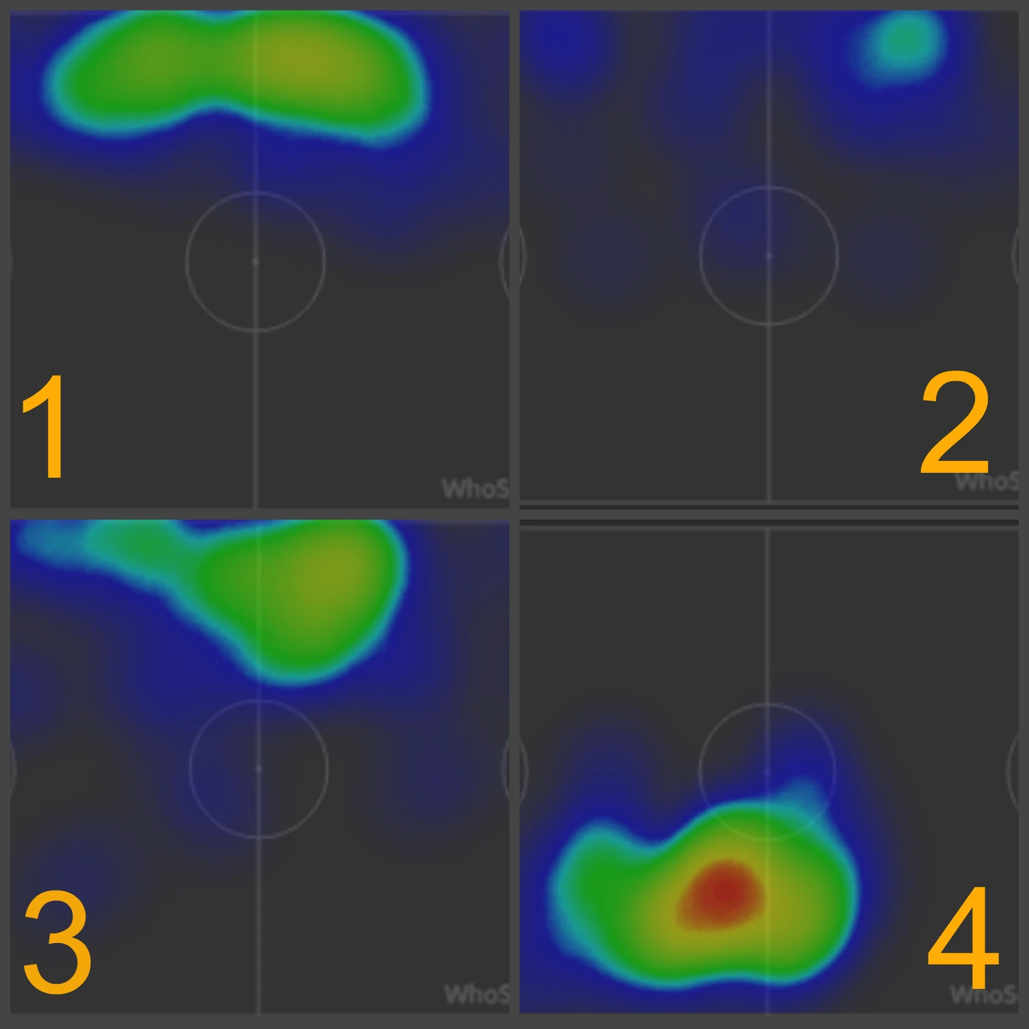 Вот тепловые карты четверых игроков, которые сегодня были главными в статье. Попробуйте угадать в комментариях где чья.