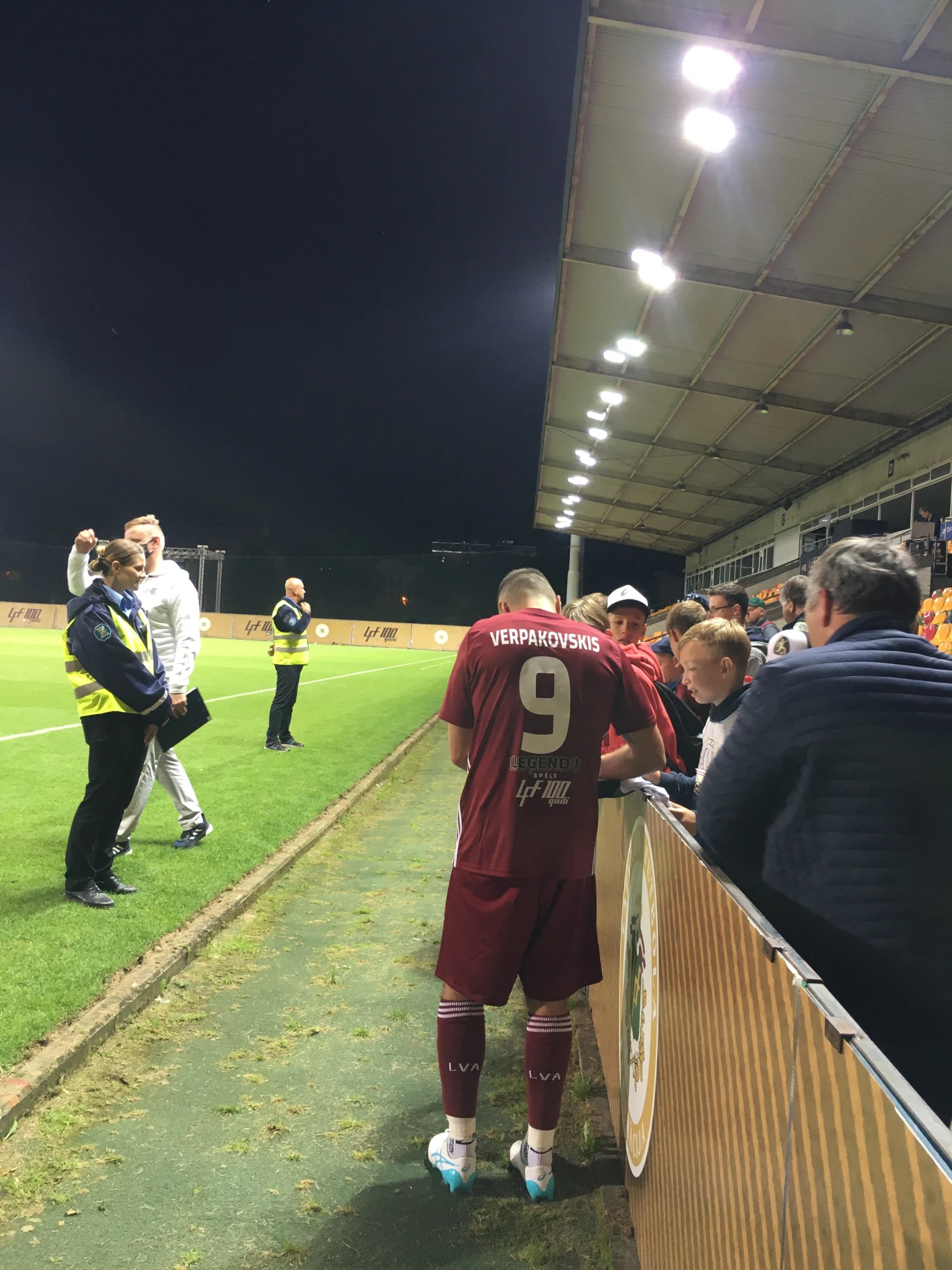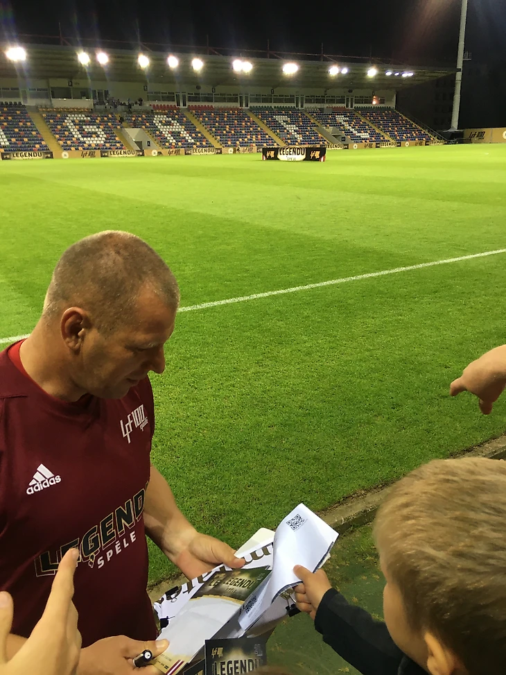 Для самых преданных болельщиков организаторы подготовили еще один сюрприз. Уже могло показаться, что все закончилось – игроки ушли в раздевалки, а большинство болельщиков покинуло стадион, но спустя несколько минут игроки, а также тренерский штаб сборной Легенд Латвии начали по очереди выходить к болельщикам, которые всё-таки остались дожидаться своих кумиров.
