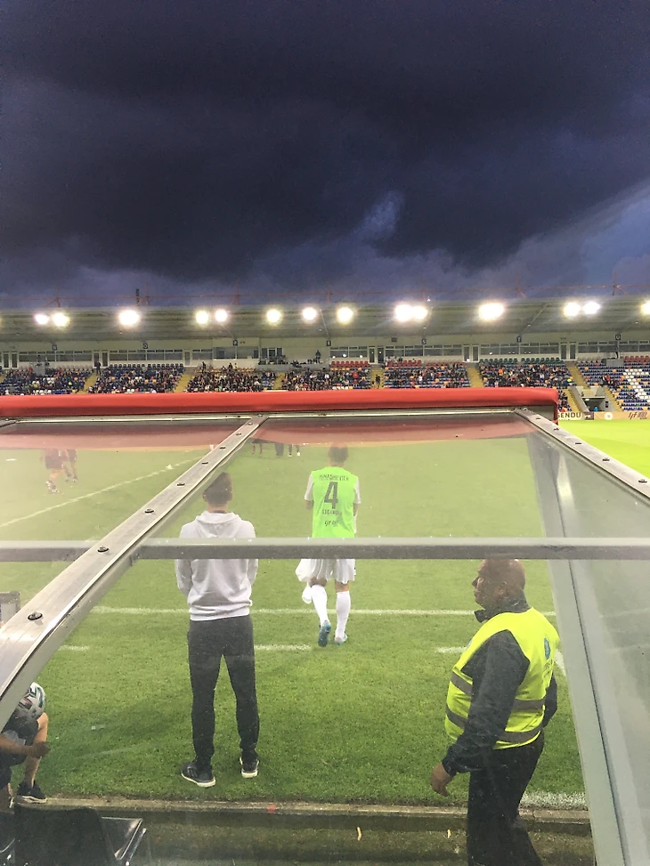 В момент когда игроки выходили из раздевалок на второй тайм, один из секторов стадиона получил возможность увидеть всех игроков на очень близком расстоянии. Вот эксклюзивный кадр Луиша Фигу и Флорана Малуды со стадиона «Сконто» в Риге: