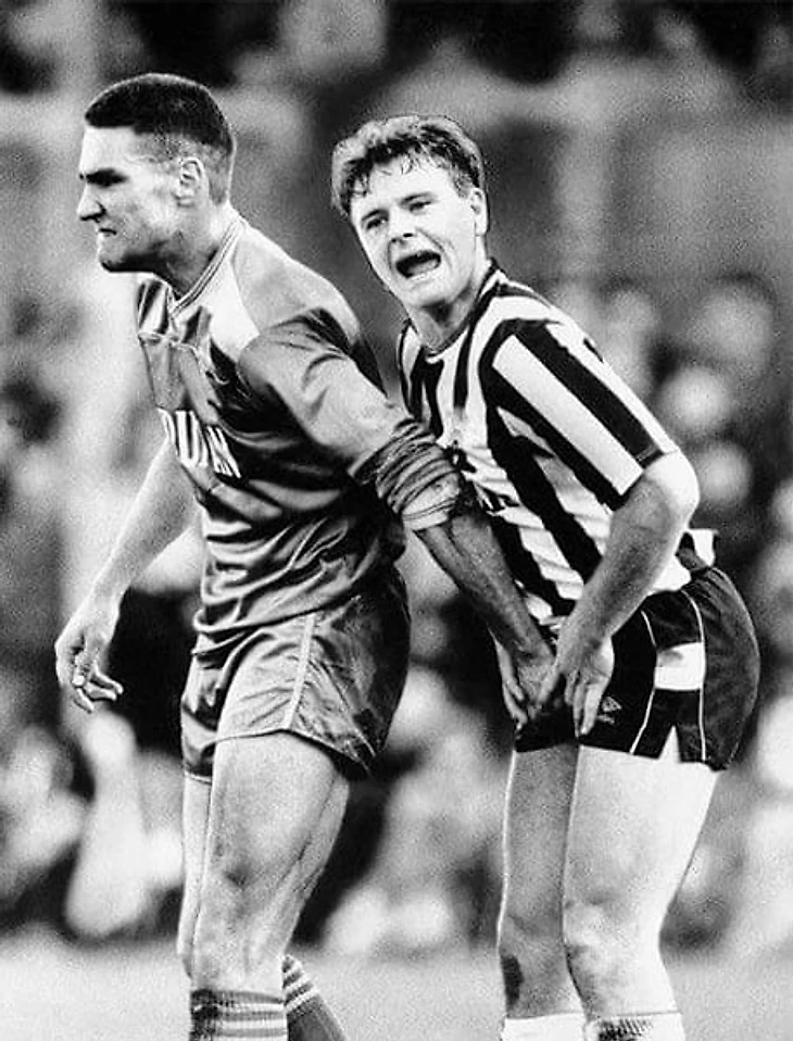 В 1988 году Винни Джонс и Пол Гаскойн встретились в Кубке Англии. Винни тогда играл за банду психов из «Уимблдона», а молодой Гаскойн – за «Ньюкасл». Во время этого матча и сделали фотографию, которая навсегда обеспечила Джонсу статус самого грязного игрока всех времен.