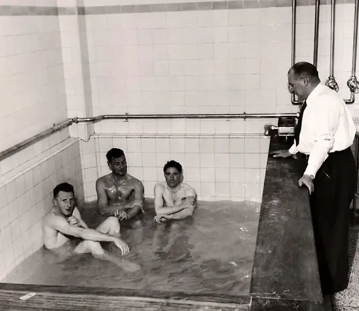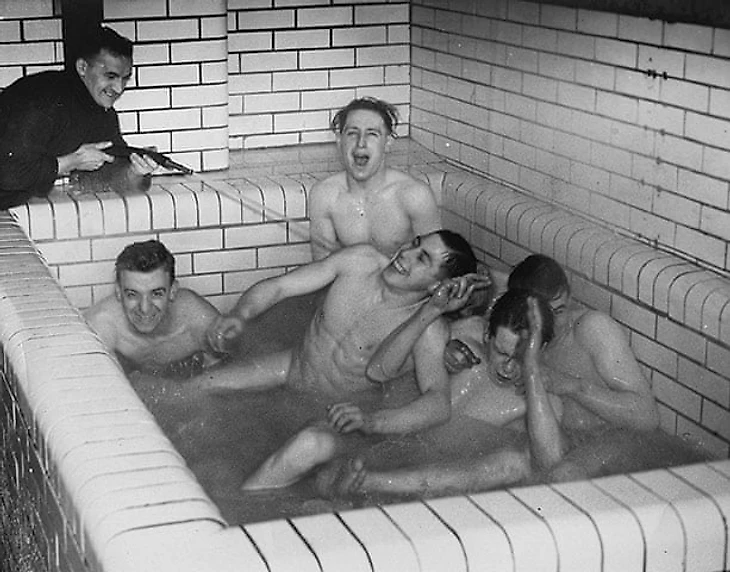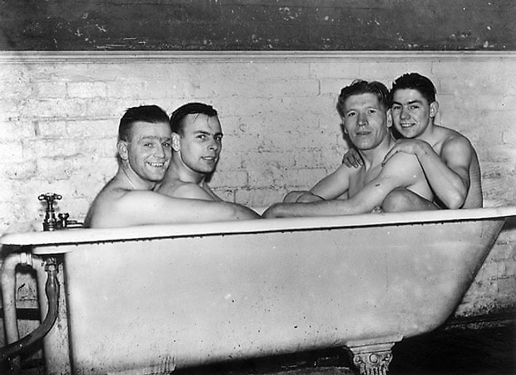Но это совершенно несравнимо с тем, что было раньше. Зацените, как эти четыре игрока «Фулхэма» уместились в маленькую ванну. Готовятся к матчу Кубка Англии-1929/30 с «Ноттингем Форест».