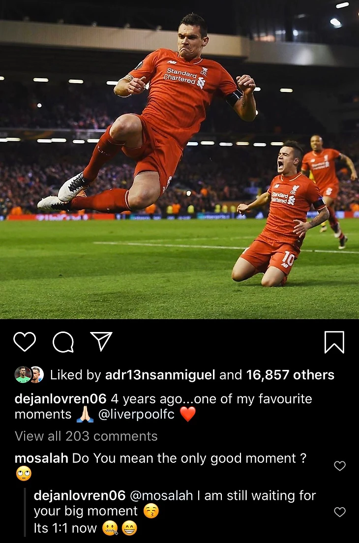 Салах ворвался в инстаграм Ловрена – прокомментировал пост-воспоминание Деяна о том самом голе дортмундской «Боруссии».