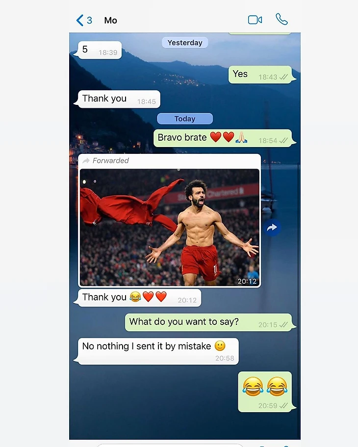 «Обычно WhatsApp он не отвечает мне на вопрос, а говорит: следующий вопрос», – смеялся Ловрен. Как-то Мо прислал ему в чат свое фото с голым торсом и объяснил это ошибкой. Конечно, Деян не поверил.