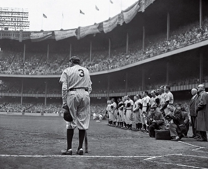 В 1948-м он появился на праздновании 25-летия стадиона «Янкис». К тому времени Рут уже не играл больше 10 лет, а последние два года страдал от рака носоглотки. Спортсмен сильно похудел, с трудом ходил и использовал биту в качестве трости. Это было прощание с болельщиками.