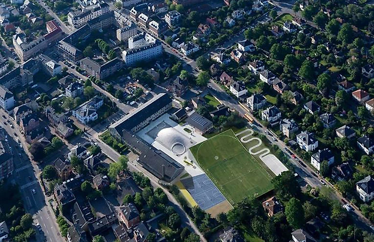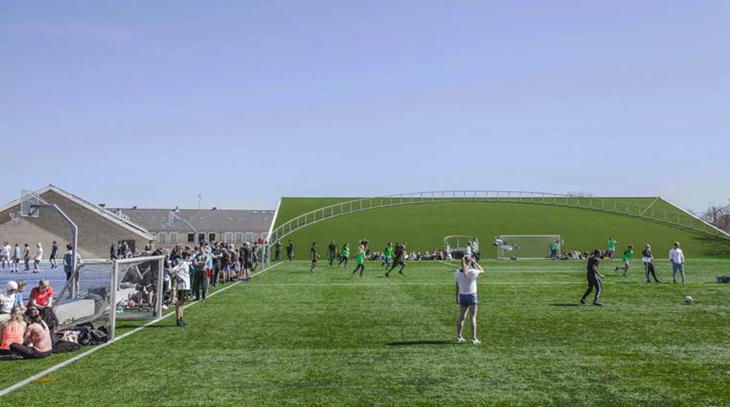 Есть у бюро Бьярке Ингельса и другой проект – обратный. Футбольное поле поверх школы, тоже в Дании.