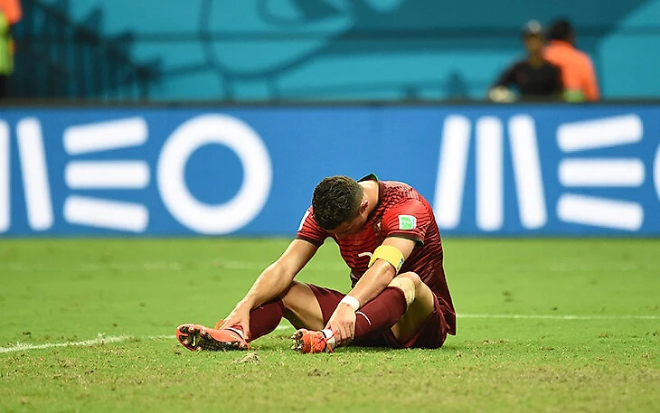 Чемпионат мира в Бразилии тоже вышел неудачным. В первом матче группы Португалия провалились с Германией (0:4) и в итоге даже не вышла в плей-офф – помешала разница мячей. Криштиану уехал с одним голом – в ворота Ганы.