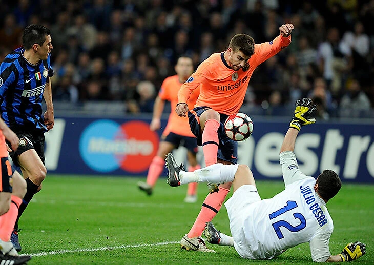 Потому что на «Камп Ноу» миланце уже в середине первого тайма остались в меньшинстве (удалили Тьяго Мотту), а концовку голом на 84-й разжег Жерар Пике, а тот лишний гол, по сути, и провел «Интер» в финал.