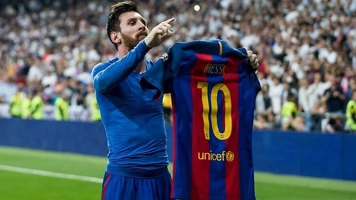 Месси, держащий футболку на «Бернабеу» в невесомости после 500-го гола за «Барсу» – сам себе статуя.
