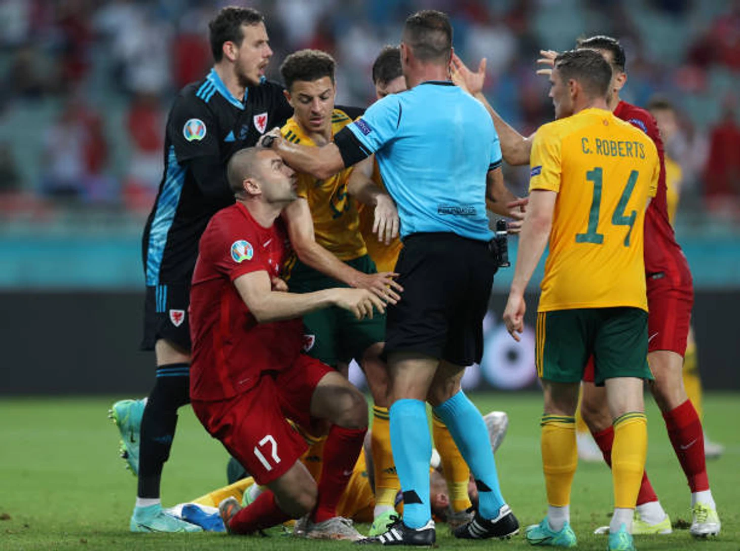 P.s. В концовке матча не выдержали нервы у опытного Бурака Йылмаза. Своим похлопыванием по щеке лежащего валлийца спровоцировал драку.