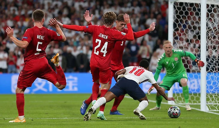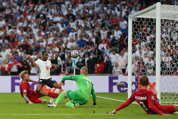 Англия захватила контроль над мячом и принялась расшатывать датские редуты. Гости всё чаще садились в низкий блок, изредка проводя контратаки. Красноречива тройная замена Юлманда в середине второго тайма.