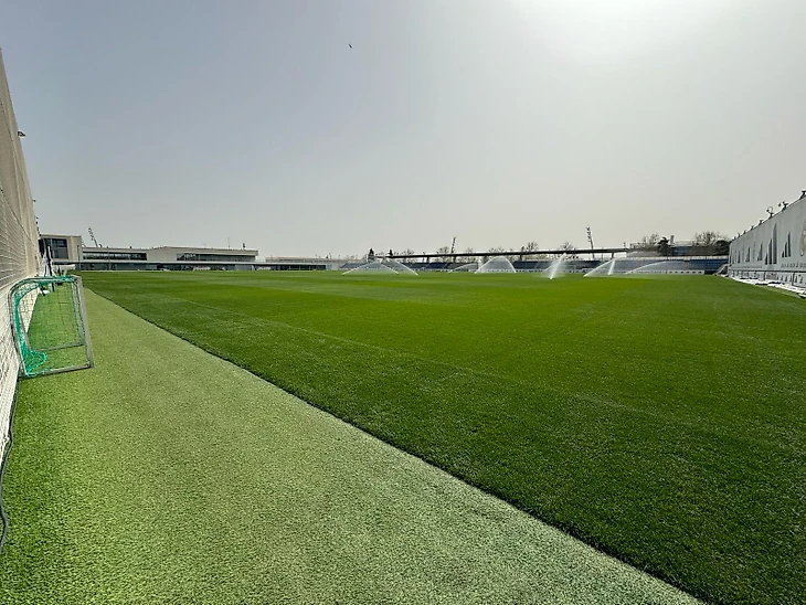 Так выглядит поле первой команды. Высота травы всегда точно такая же, как и на Сантьяго Бернабеу, да и в целом за полем ухаживают те же агрономы, что и за ареной.
