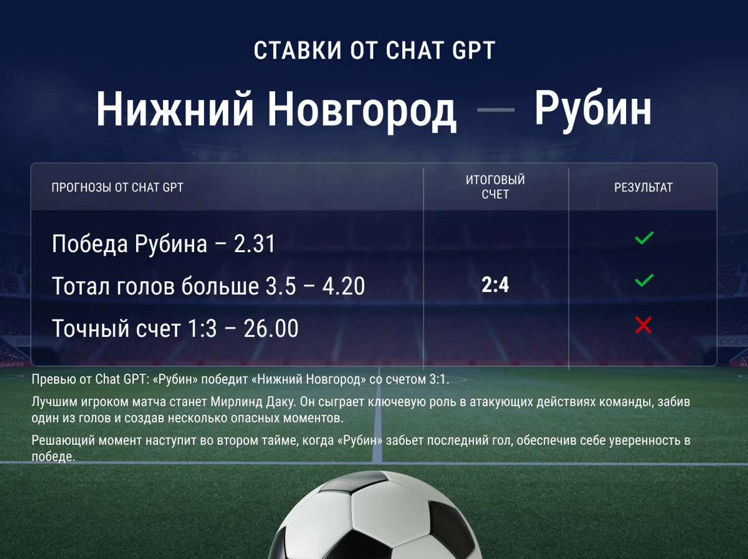 Chat GPT предсказал ТБ 3.5 в матче НН – «Рубин»