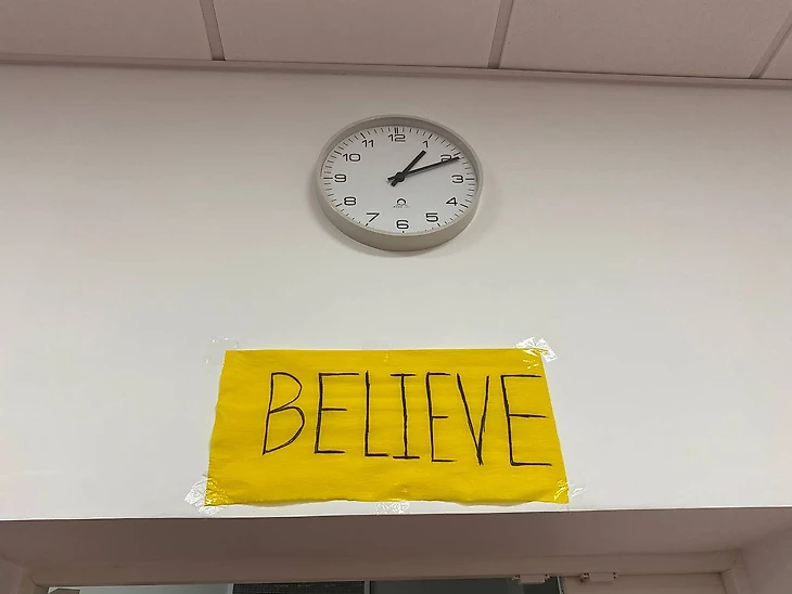 Над входом в раздевалку висит плакат Believe – очевидно, был там еще до матча.
