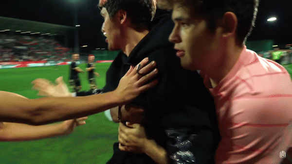 Он был настолько зол, что расталкивал и посылал даже игроков 2D, пытавшихся его успокоить. Крик «он его ударил» не затихал ни на секунду.