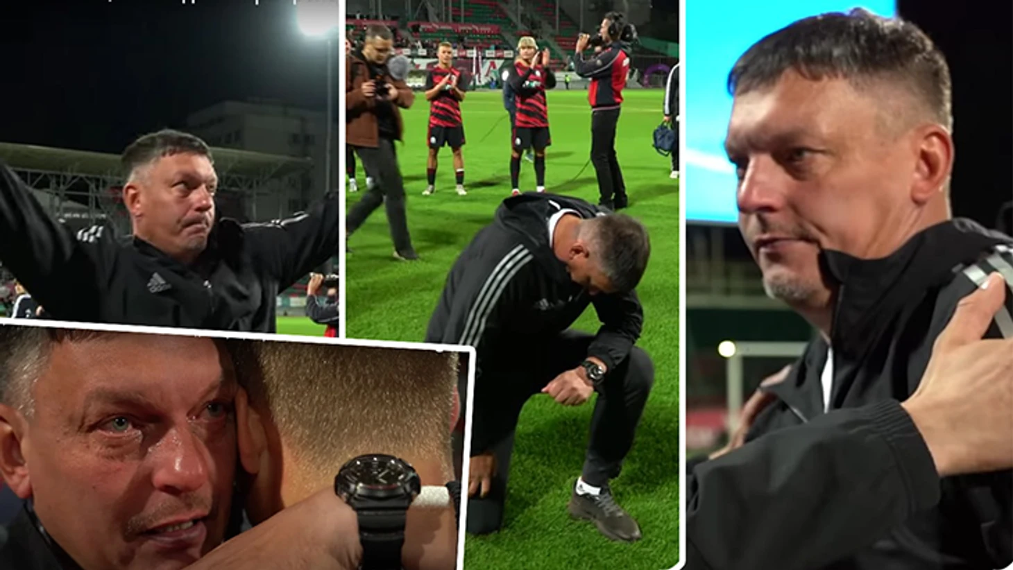 После матча Зубко подошел к фанатской трибуне: упал на колени, затем поднялся и произнес эмоциональную речь.
