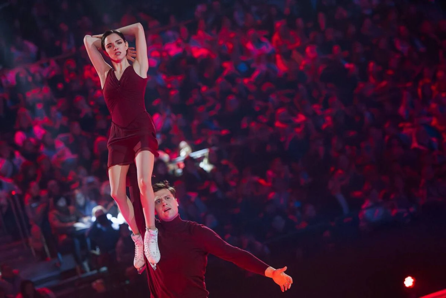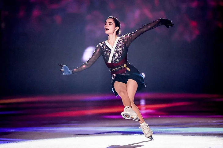Помимо номеров в своем основном амплуа – фигуристки-одиночницы – Женя выступила в паре с Александром Энбертом. Их дуэт давно полюбился зрителям, ребята подарили нам не только яркие шоу-номера, но и незабываемые образы Кити и Левина, Кармен и Хосе. Лиричный номер под песню «Круги на воде» был нежным, прекрасным и запоминающимся.