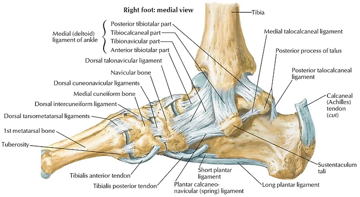 В отличие от руки, которая эволюционно, с развитием прямохождения, стала более приспособлена для использования орудий труда и в целом более тонким действиям, на ногу ложилась куда более примитивная, но тяжелая работа – держать вес всего тела. Собственно, для распределения этой нагрузки и укрепления голеностопного сустава, принимающего на себя весь «удар» каждого нашего шага, и нужно такое количество связок и мышц, укрепляющих его. Да, это ограничивает объем движений в нем, но обеспечивает прямохождение и распределение нагрузки.