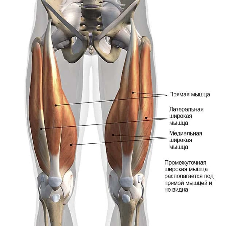 Кроме того, колено стабилизируют и мышцы бедра. Основную роль здесь играет четырехглавая.