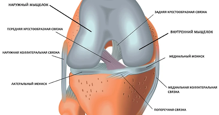 Патологию нельзя разбирать без знания нормы. Поэтому небольшой курс анатомии – передняя крестообразная связка начинается от внутренней поверхности наружного мыщелка (костного выступа) бедренной кости, пересекает коленный сустав и прикрепляется к передней части передней межмыщелковой ямки большеберцовой кости. А теперь по-русски: эта связка стабилизирует коленный сустав и не дает голени чрезмерно смещаться вперед.