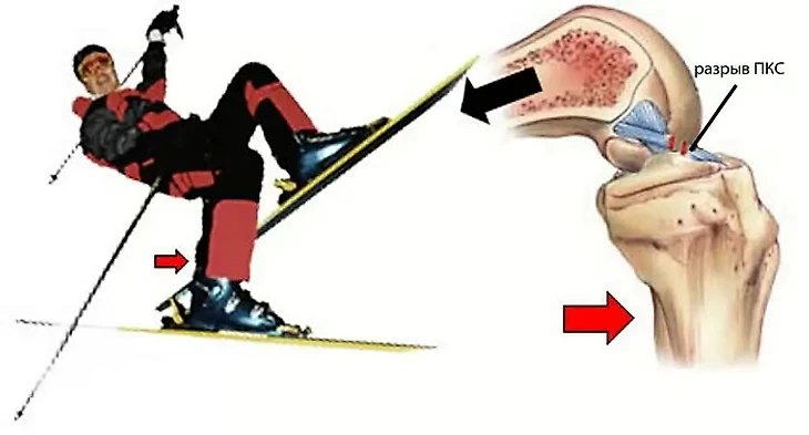 В группе риска футболисты, игроки в американский футбол, лыжники и в целом любой контактный вид спорта. Вы можете спросить, при чем тут контактные виды спорта и вдруг лыжи? Какой там контакт? Но вы видели когда-нибудь, как падают лыжники? Нога едет в одну сторону, а тело вращается по инерции в другую. Да-да, снова тот же механизм, потому что ботинок, как бутса, фиксирует голень.