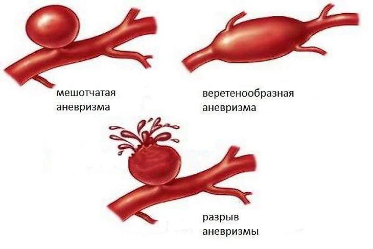 Аневризма — патологическое расширение артерии. Причины могут быть врожденные (патологии сосудов, соединительной ткани) или приобретенные (повышенное артериальное давление, атеросклероз и другие).