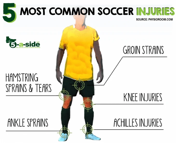 Если не вдаваться глубоко в цифры, то можно выделить 5 самых «многострадальных» мест футболиста: хамстринги (мышцы задней поверхности бедра) – это мышечные травмы, повреждения сухожилий, тендинит и другие; паховая боль; травмы колена (разрыв передней крестообразной связки и травмы менисков); повреждения голеностопного сустава и различные травмы ахилла (их я позже вынесу в отдельный большой текст, тема действительно обширная).