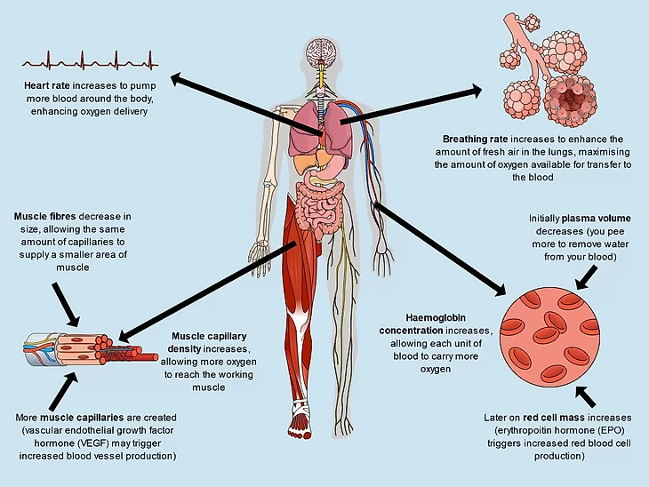 Реакция на гипоксию у всех разная: у кого-то первые симптомы появляются на 2000 метров, у кого-то на 4000, а у некоторых не возникают вовсе.