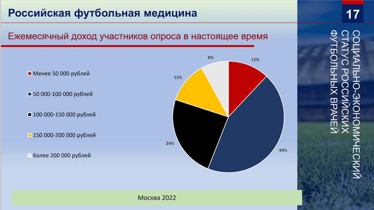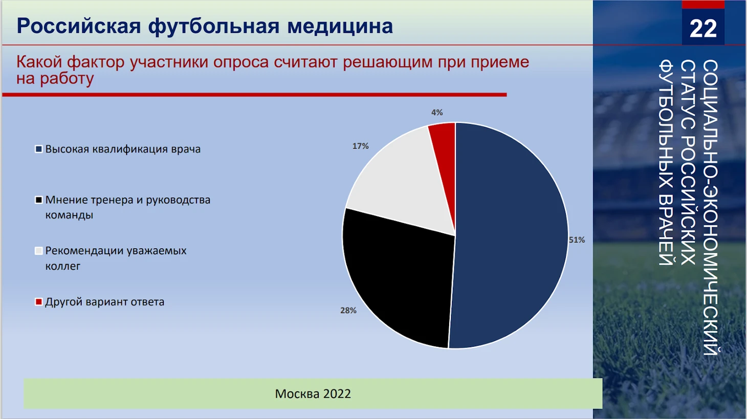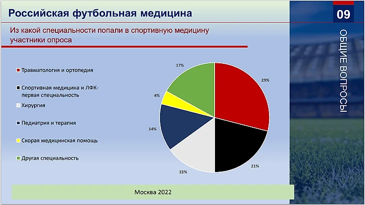 В исследовании приняли участие 113 клубных медиков в возрасте от 25 до 71 года, со стажем работы в медицине до 40 лет из РПЛ, Первой и Второй лиги и не только.