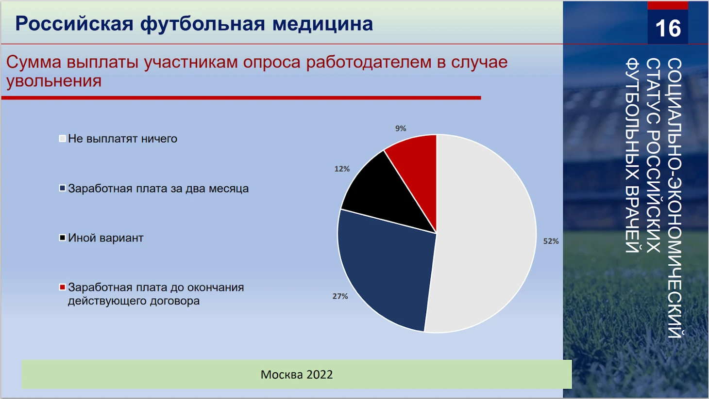 В случае увольнения более половины опрошенных не получит никакой компенсации. При этом столько же врачей сталкивались невыполнением финансовых обязательств клубом.