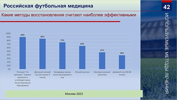 В этом блоке достаточно простые и доступные методы восстановления, их можно встретить как в Первой Лиге, так и в АПЛ. Питание и сон — главные критерии хорошего восстановления.