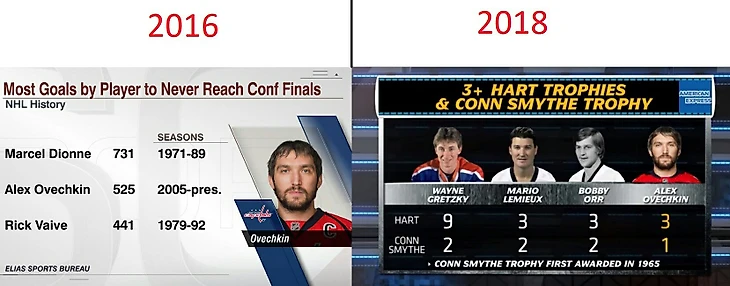 Факт: в последней игре финала Овечкин не только забил, но и рванул назад, не позволил Бельмару создать угрозу во время игры в меньшинстве, когда Вашингтон уступал в счёте, тем самым исправив собственный неудачный пас.