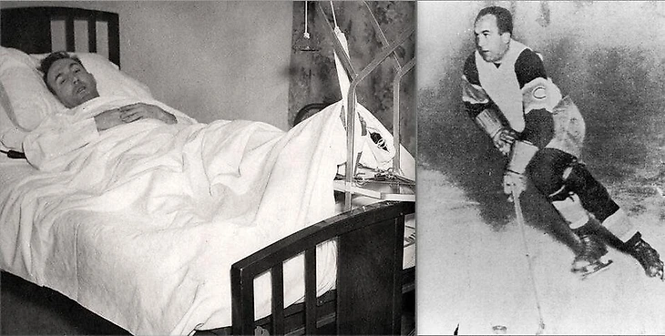 Если бы Моренц (1902-1937) был нашим соотечественником, то глядя на даты рождения/смерти, нам бы невольно пришло в голову что-нибудь вроде «шпион немецкой, английской и японской разведок», «чёрный воронок», «10 лет без права переписки». Но Моренц проживал в Канаде, и старуха с клюкой (а может быть и с клюшкой) подстерегла его на ледовой площадке. В январе 1937 г. в игре с Чикаго Моренц потерял равновесие, ударился о борт, причём конёк застрял в щели. Мгновение спустя в него врезался защитник Чикаго Эрл Сиберт. Моренц получил тяжелейший перелом ноги и спустя 1.5 месяца скончался. Причиной тому стал тромб, обусловленный этой травмой. Вся Канада испытала шок.