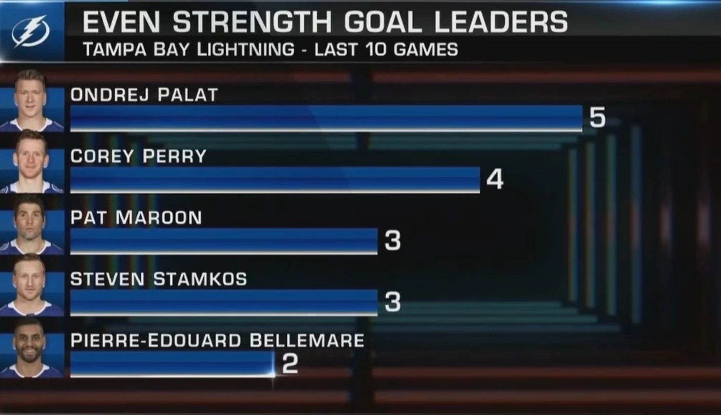 Даже в лучший для себя год по шайбам (и баллам в целом) плей-офф для Стэмкоса внутри Тампа Бэй нашёлся человек с равным числом шайб, ранее упомянутый Палат (и это ещё Пойнт толком не играл). Да что там очко за игру, даже 20 баллов ему снова не покорились. 19 - на целый пунктик опередил само себя образца прошлого сезона, а также "легендарного нефтяника" Фернандо Пизани, правда тот аж 14 шайб положил тогда, о чём "илитный снипер" видимо так и останется мечтать.