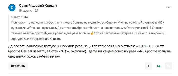 Буквально, когда писал этот текст, наткнулся на очередное одного из пустословов в комментариях к статье «Эти русские набрали 1000 очков в НХЛ»: