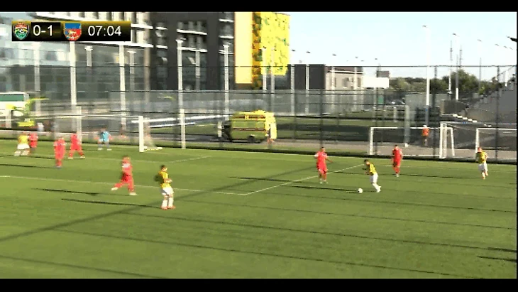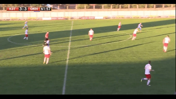 Хорошо бежит атакер Кызылташа - раскованно, эффектно замыет навес их нападач - (1-1) бело красные сравняли