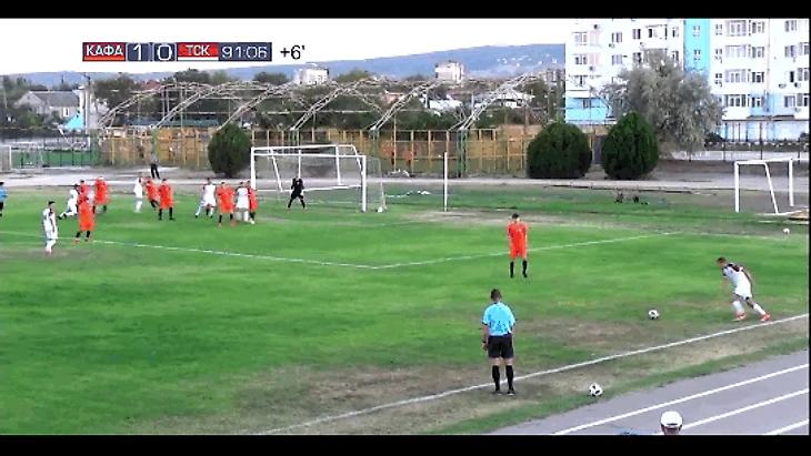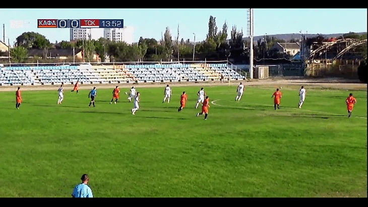 Под конец игры симферопольцы обложили штрафную Кафы, те стоят и пытаюся убежать в контру