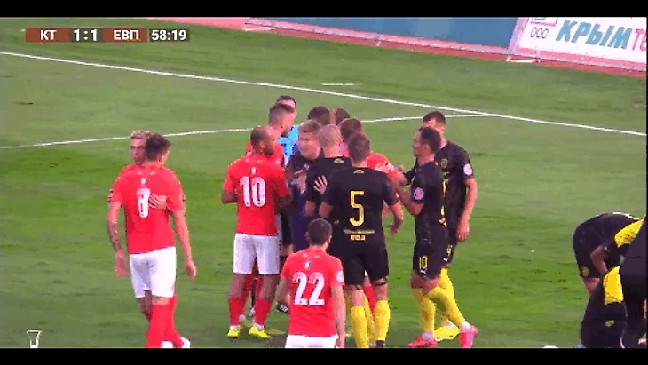 Программа второго тайма была открыта падением в штрафной Евпатории и чудом отбитым пеналем
