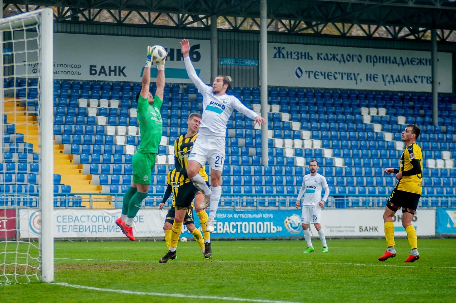 Пчьолкины попытки разбиваются об защитников. А одна из хозяйских атак заходит в цель (2-0 Севастополь)