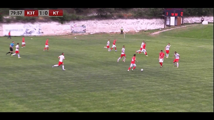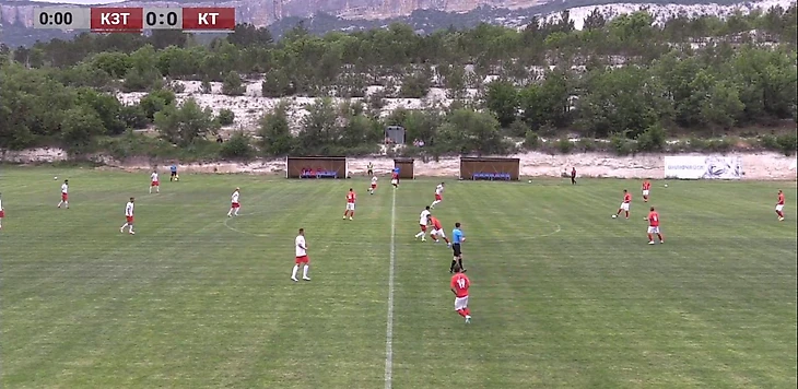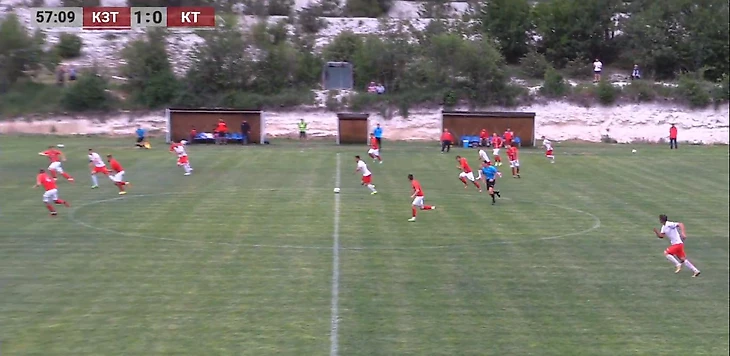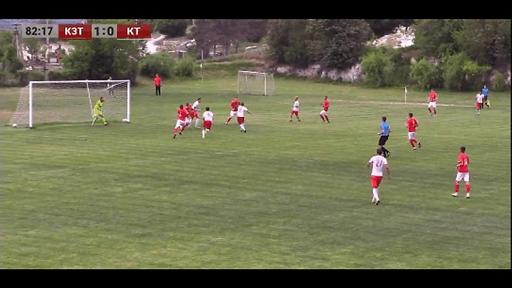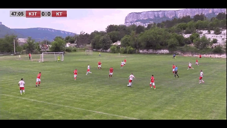 Во второй половине Кызылташ бежит, Крымтпелица ждет. Ростислав бьет — слава краснокаменцев растет (1-0 Кызылташ)