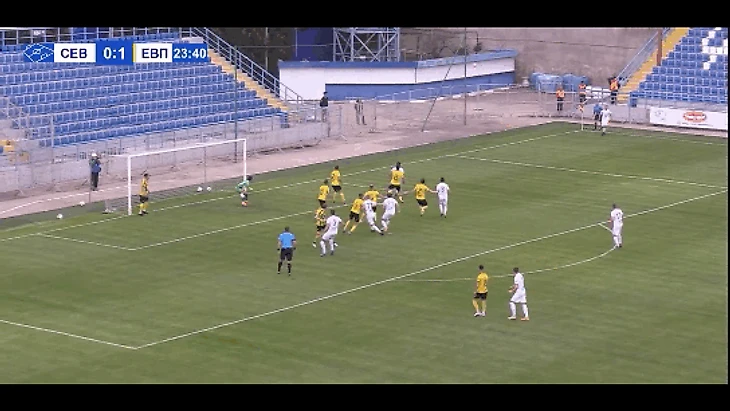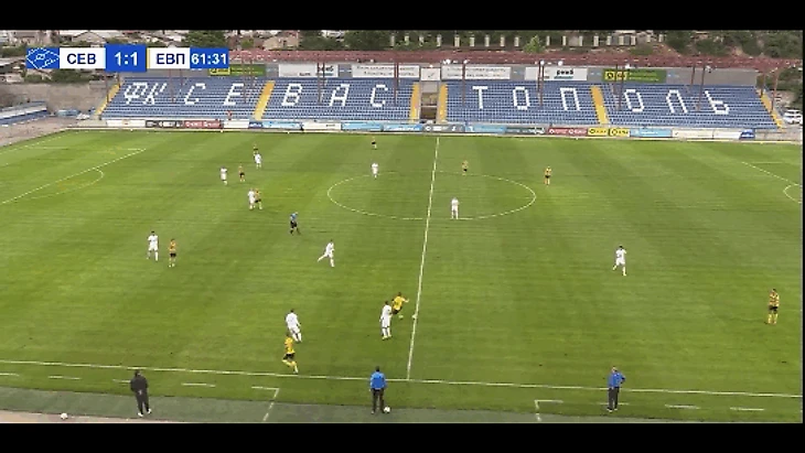 Ни секунды покоя в этой игре. А вот и угловой поспел. Вскинули руки к небесам чжелтые в просьбе офсайда, но нет. (1-1 Севастополь)