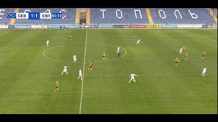 Шикарно вырезает мяч Матвиенко, бережно продолжает Тарасенко и без шансов пробивает Супрун (2-1 Севастополь)