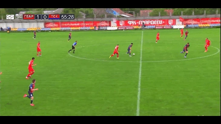 У Таврии носится воодушевленный своим голом в предыдущем матче #7 А.Борисов (да и остальные в порядке), гвардейский #11 В.Цой, бодаясь сразу с тремя, сохраняет мяч для команды (да и другие рубятся на славу).