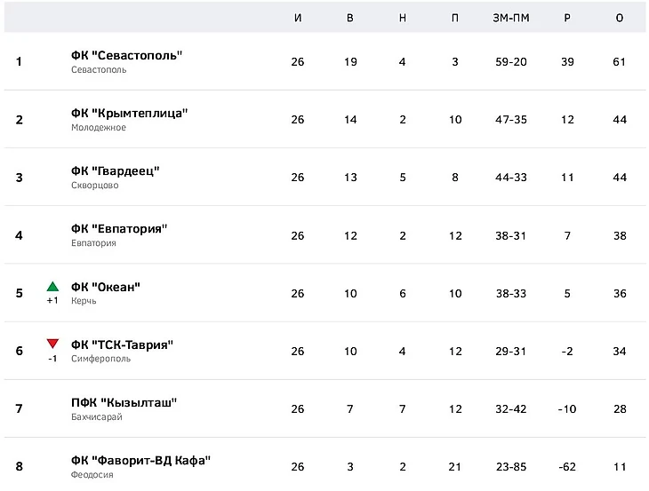 Евпатория, Кызылташ и Таврия, проиграв, практически оставили свои последние задачи. Таврия даже уступила свое место Океану.