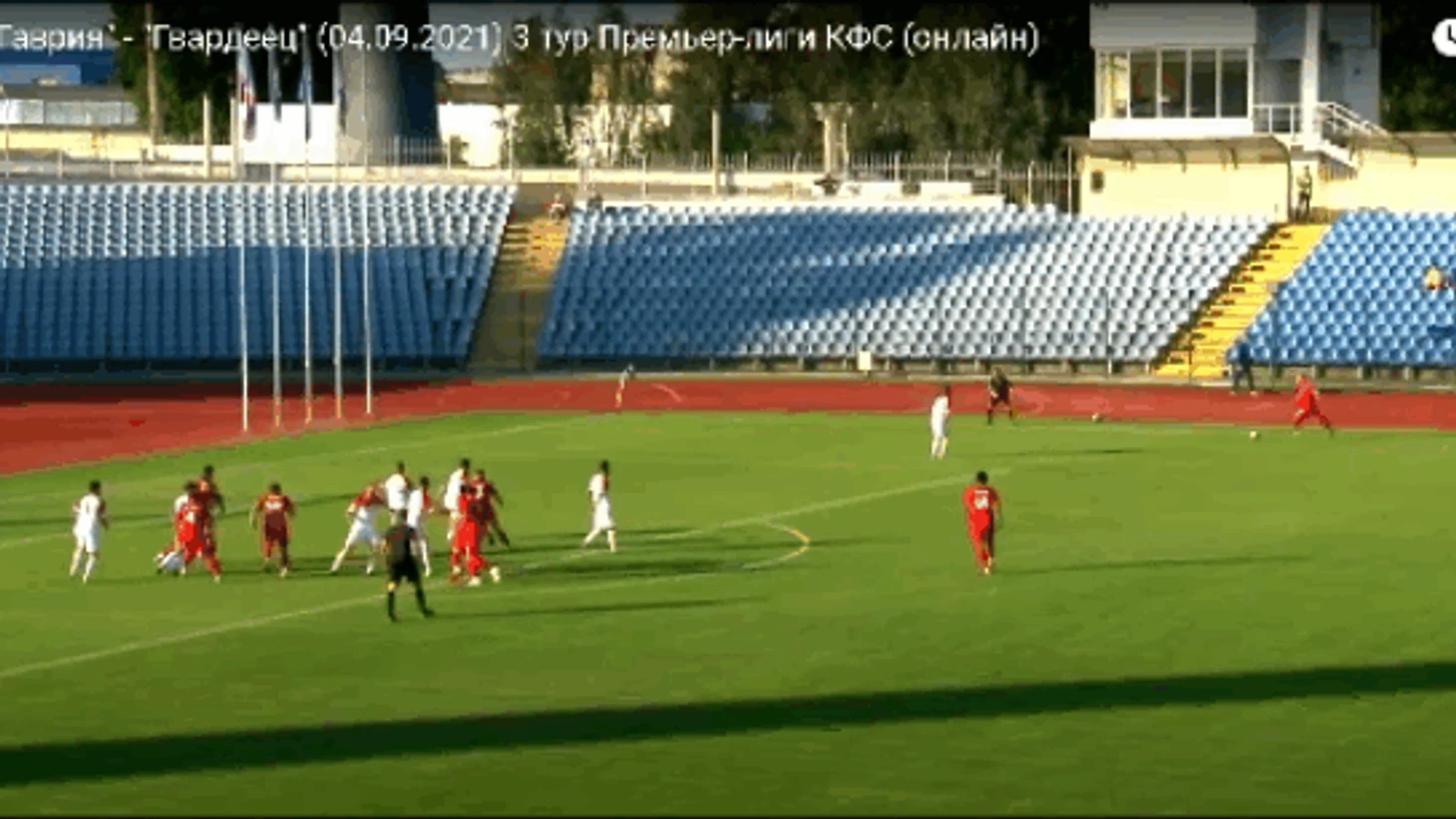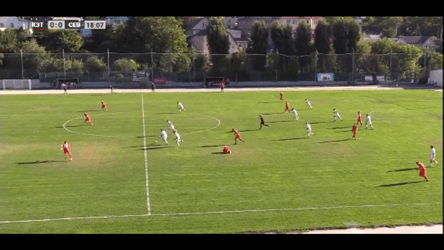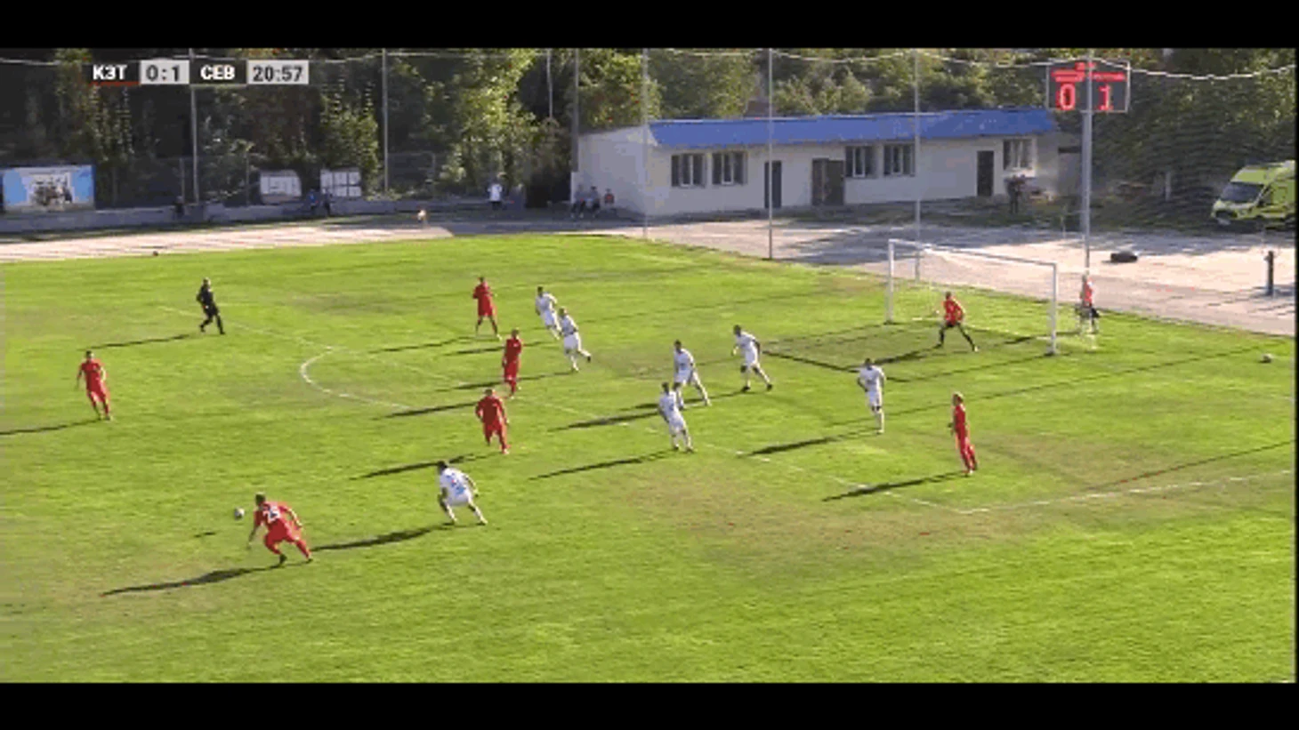 Юдин двоих оббегает один - (2-0 Евпатория) длинный пас становится проблемой для защиты керчан