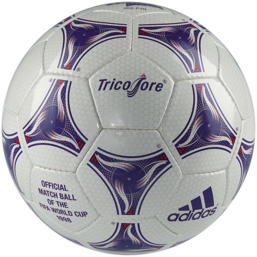 Первый многоцветный официальный мяч чемпионата. Французский флаг и хвост петуха, традиционного символа Франции и Французской футбольной федерации, нашли отражение в названии и дизайне. В adidas Tricolore использовался слой синтетической пены с регулярной матрицей из прочных микроячеек, заполненных газом. Такая структура обеспечивала долговечность и хороший тактильный контакт с мячом.